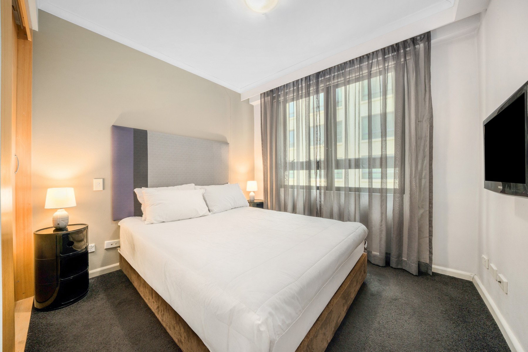 - Fully furnished with modern inclusions; queen bed, lounge set, dining table and chairs, and a TV.