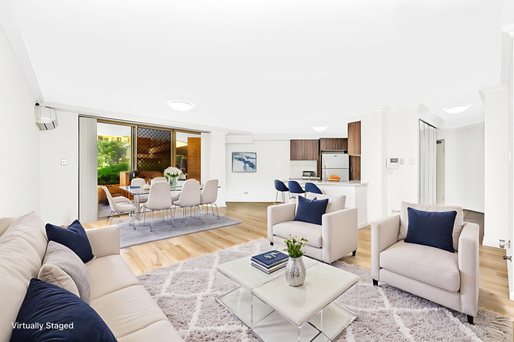 * Open-plan living and dining area with natural light