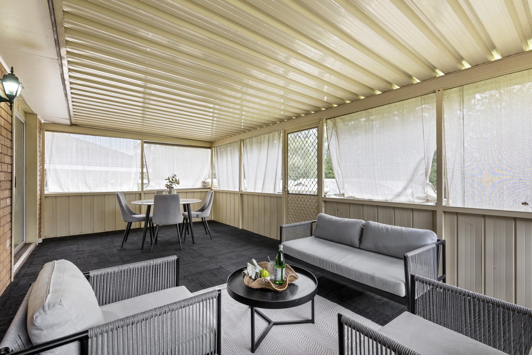 - Enclosed sunroom suited for entertaining