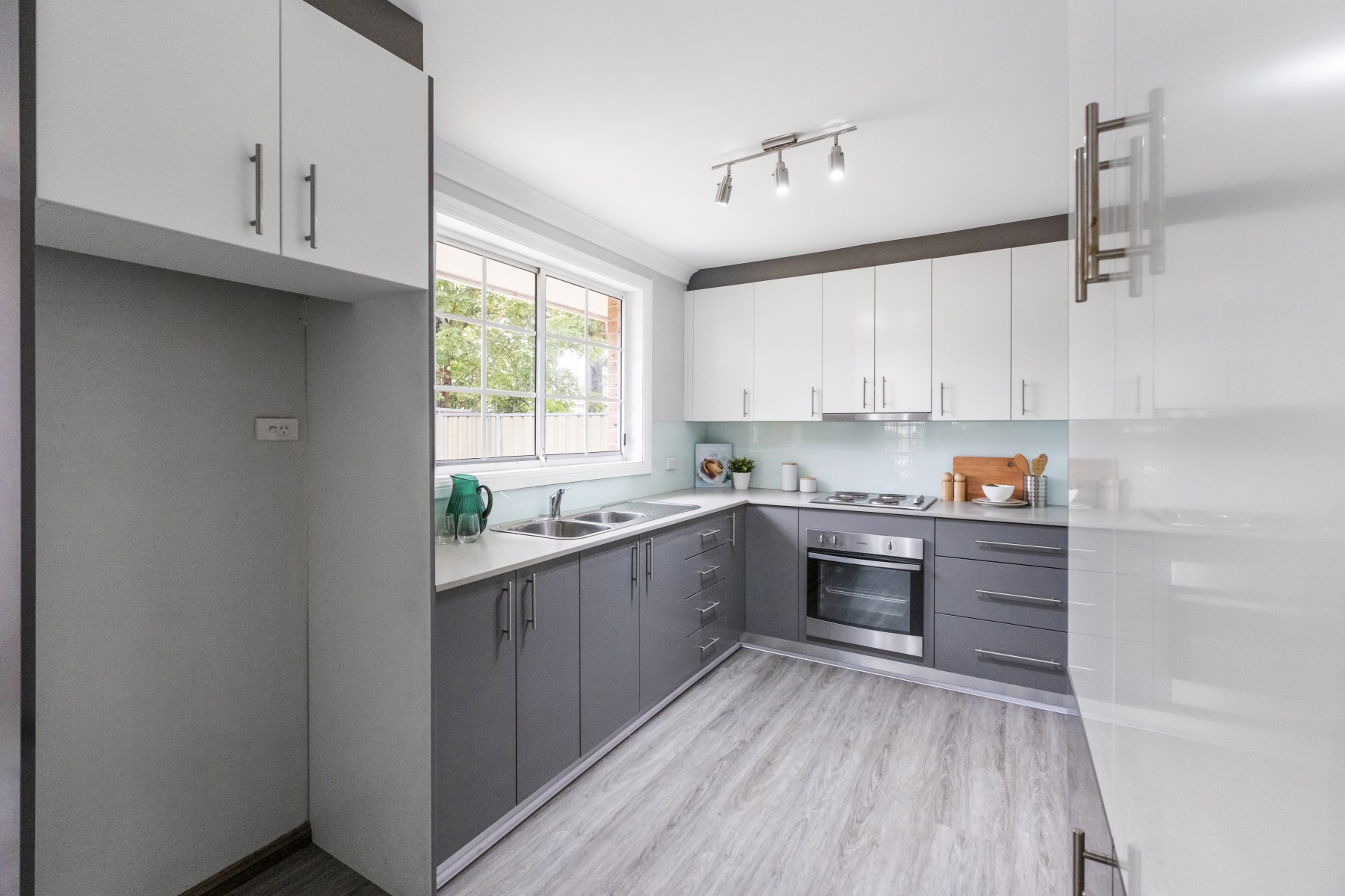 * Chic modern kitchen with stone bench tops