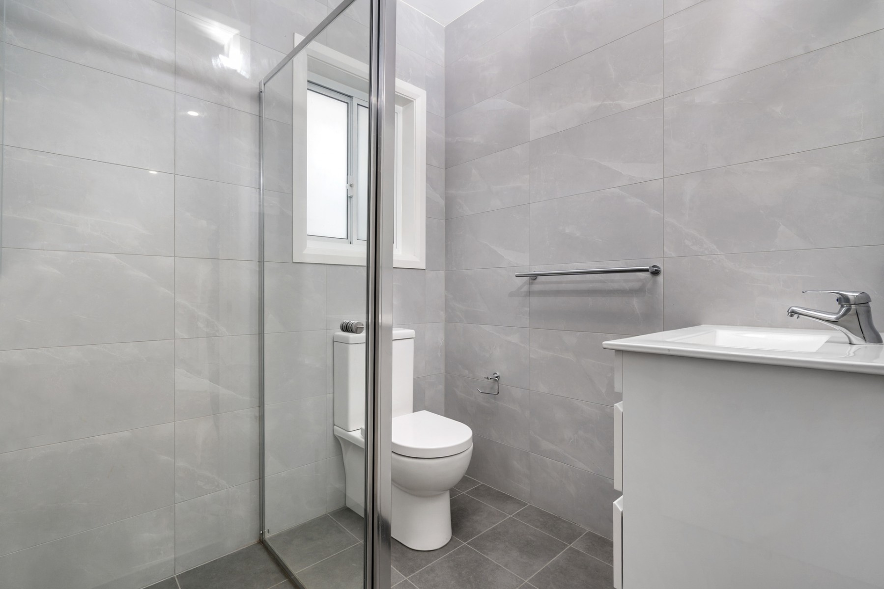 * Floor to ceiling tiled bathroom with shower only