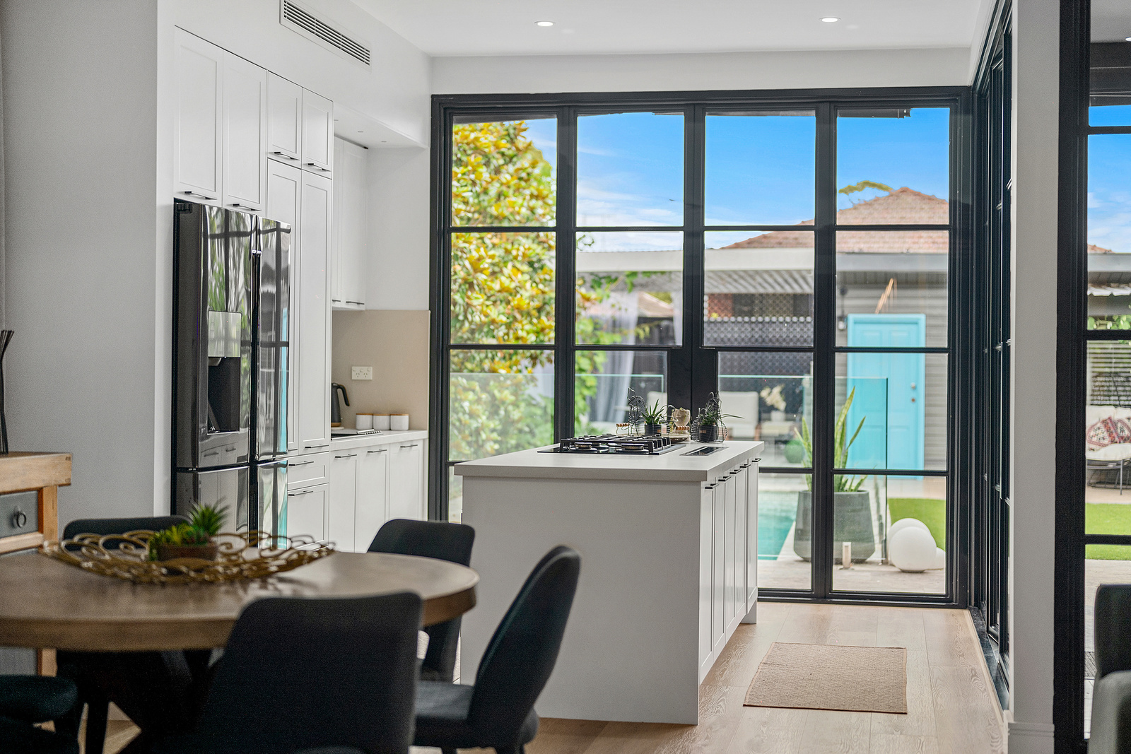 * Luminous glass framed living flows seamlessly to the outdoors
