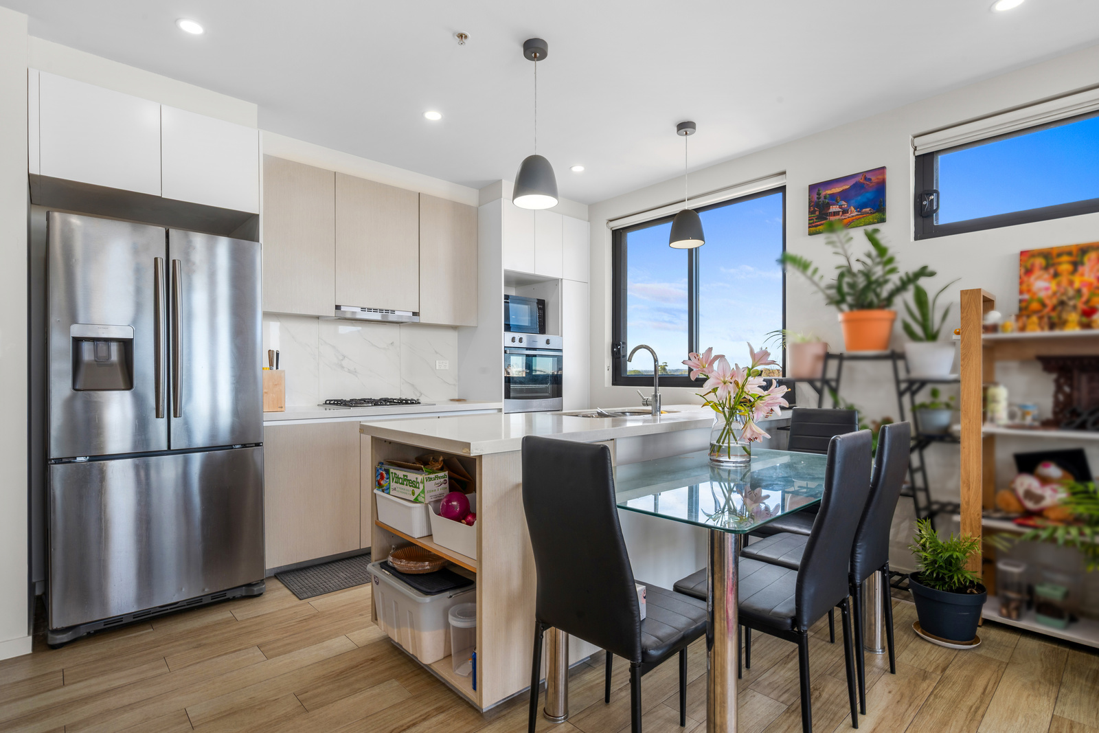 * High quality kitchen with stone benchtops, gas cooking and dishwasher